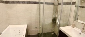Luxus fürdőszoba: hidromasszázs zuhanykabin + hidromasszázskád pezsgőfürdővel, zenefunkcióval, hangulatvilágítással