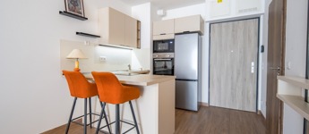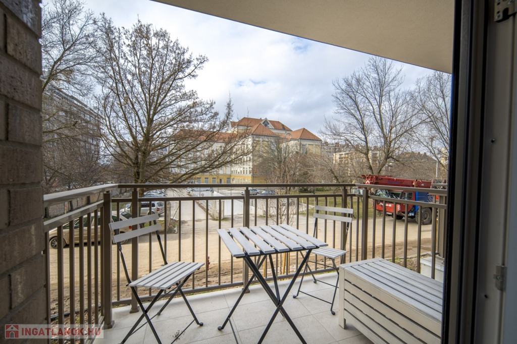 Kiadó Budapest IX. kerülete, a Vágóhíd utca területén, a Woodland lakópark 1. emeletén egy 39 m²-es, 1 + ½ szobás, erkélyes lakás.