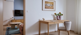 Teljesen bútorozott, rendkívül igényes kialakítás: PRÉMIUM minőségű bútorokkal és magas színvonalú anyaghasználattal, klímaberendezésekkel, mosó- és szárítógép egyben.
