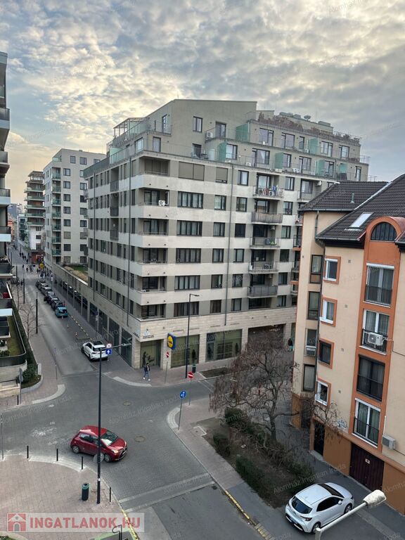 A lakás napfényes, csendes, az erkély és az ablakok a Corvin-negyed irányába néznek.