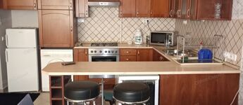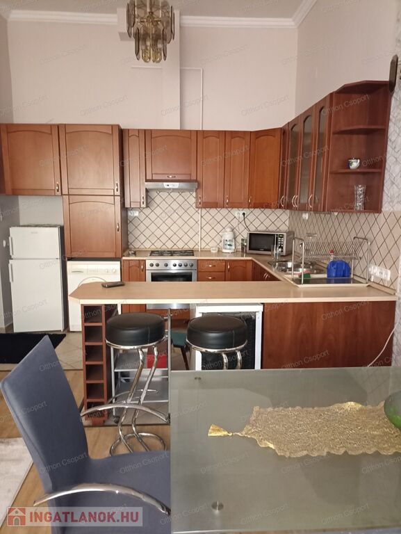 A Király utca és a Teréz körút találkozásánál kiadó egy liftes ház első emeletén található, 73 négyzetméteres, amerikai konyhás nappali plusz 2 hálószobából álló, teljesen gépesített és berendezett, világos, erkélyes lakás. A fűtést gázkazán, a hűtést klíma biztosítja.