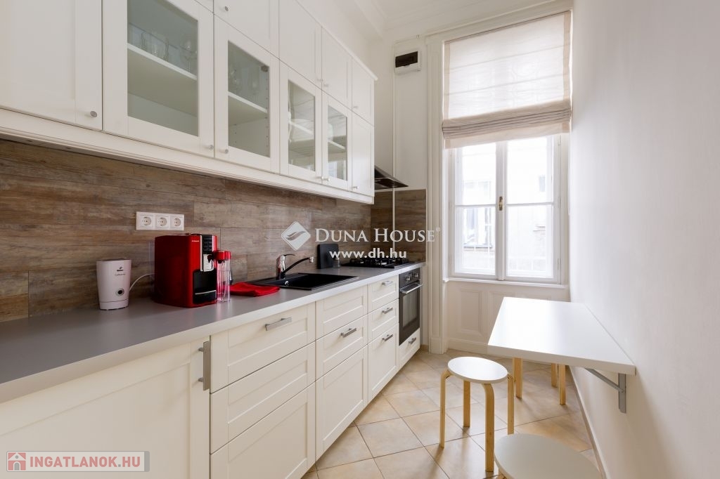 Nem csak egy újabb lakás, hanem ÉLETSTÍLUS ez a mottója a sikkes Bécsi utca egyik történelmi épületében lévő, exkluzív minőségben felújított, 86 m2-es lakosztálynak.A nagyvonalú, tágas terekkel, két hálószobával, nappali-étkezővel és teljesen felszerelt konyhával rendelkező, modern design bútorokkal berendezett lakás minden igényt kielégít.A teljes körű műszaki és esztétikai felújítás során prémium minőségű anyagok és berendezések kerültek beépítésre, de nagyon fontos szempont volt a lakás polgári miliőjének megőrzése. Ablakaiból pompás kilátás nyílik a Szervita tér 21. század építészeti eklektikájára. A szobák légkondicionálóval felszereltek, a hatalmas beépített szekrényekben mindennek helyet lehet találni. A környék közlekedése, infrastruktúrája kiváló,.Pár perces sétával elérhetőek a Metró vonalak és a történelmi belváros teljes gasztronómiai, turisztikai kínálata. A közös költség tartalmazza a víz- és gázfogyasztást , valamint az internetet.Elsősorban hosszú távra /1 vagy több évre/ kiadó, 2 havi bérleti díjnak megfelelő kaució és egyhavi bérleti díj megfizetésével vehető bérbe.Egy évnél rövidebb bérleti idő esetén a havi bérleti díj 2700 Euro All inclusive.*****************************************************************************************************************************Premium apartment for long term rent in Servita Square***Not just another apartment, but a LIFESTYLE is the motto of this 86 m2 suite, exclusively renovated in a historic building on the chic Vienna Road.With generous, spacious living spaces, two bedrooms, a living-dining room and a fully equipped kitchen, this apartment is furnished with modern design furniture to meet all your needs.The complete technical and aesthetic renovation has been carried out using premium quality materials and fittings, but with a strong emphasis on maintaining the apartments bourgeois ambience.The windows offer a magnificent view of the 21st century architectural eclecticism of Szervita Square.The rooms are air-conditioned and there is space for everything in the large built-in wardrobes. The area has excellent transport connections and infrastructure, with the Metro lines and the historic city centre with all its gastronomic and tourist attractions within a few minutes walk.The common cost include water, gas and internet.Available for rent mainly for long term /1 or more years/, with a deposit of 2 months rent and one months rent.For rentals of less than one year, the monthly rent is 2700 Euro all inclusive.