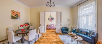KISÁLLATTAL IS KÖLTÖZHETŐ, 88 négyzetméteres, nappali plusz 2 hálószobás, elegáns lakás kkiadó a Hercegprímás utcában, közvetlen a Bazilika közelében. Az ingatlan a társasház 4.emeletén található, lift van. Az ablakok a csendes, belső udvarra nézne. A fűtést gázkazán biztosítja, a lakás klimatizált.