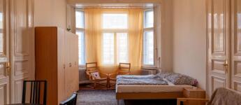 Szobák teljesen külön nyílóak, 24, 30 és 24 nm-esek, egybe is nyithatóak, mindegyikben franciaágy és mindhárom utcára néző. Fürdőszoba kádas, WC-vel