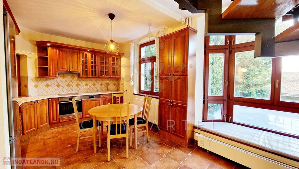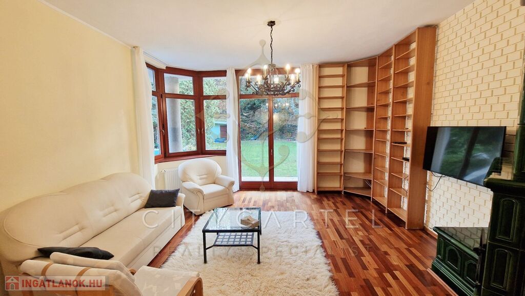 Zugliget gyönyörű kirándulóhelyénél, a Libegőhöz közel, 141 nm-es belső három szintes, nappalis négy szobás, két fürdővel és három wc-vel rendelkező hőszivattyús, klímás, riasztós lakás, a hozzá tartozó 80 nm-es terasszal, kis fűszernövény kerttel és két fedett kocsibeállóval kiadó.