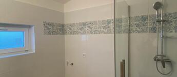 Fürdője zuhanyzós, ablakos és külön WC van, kézmosóval.