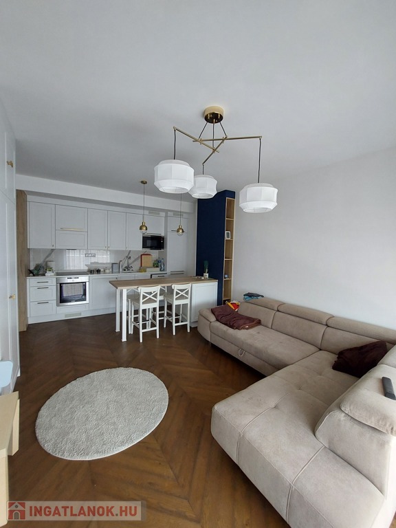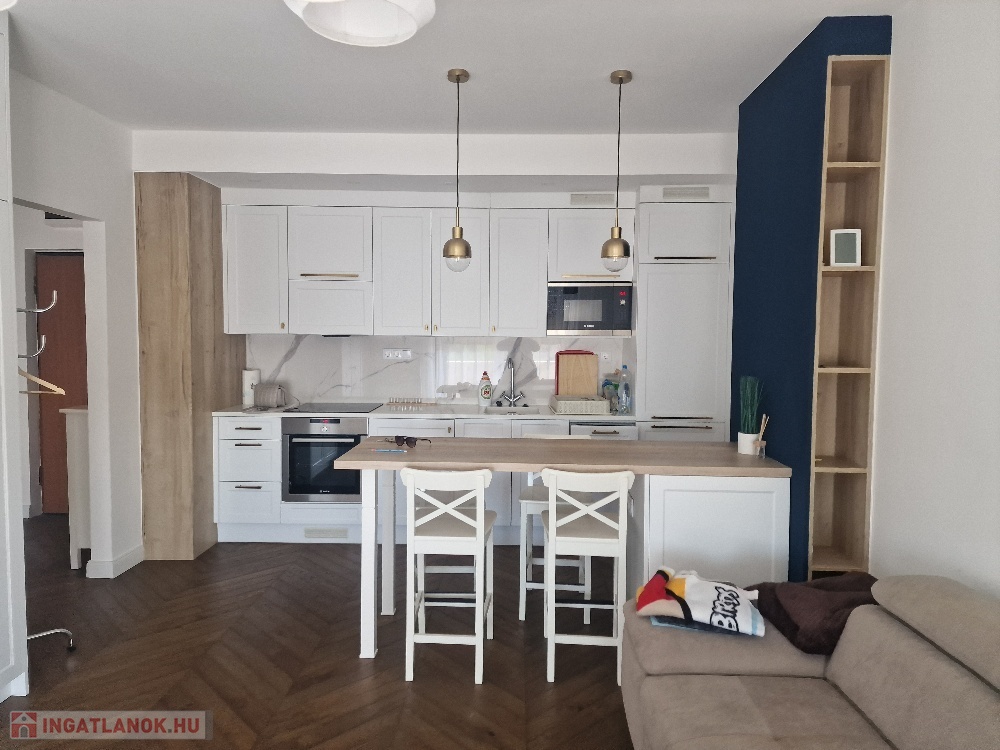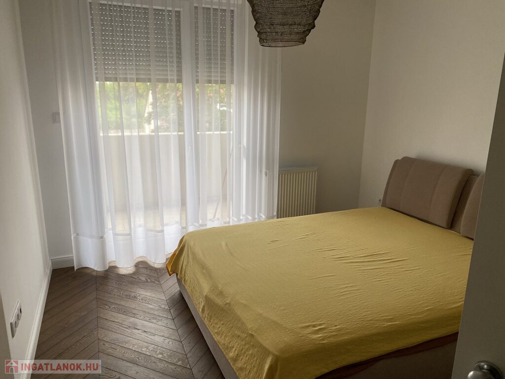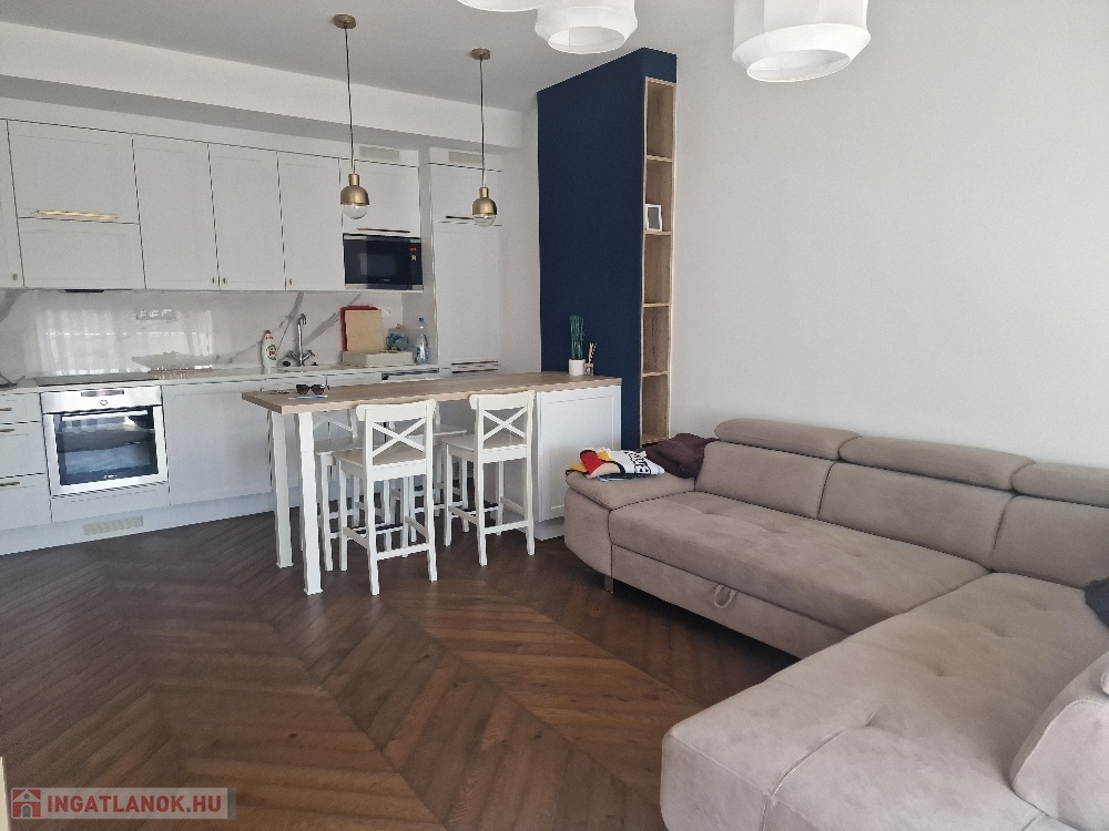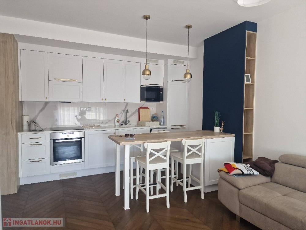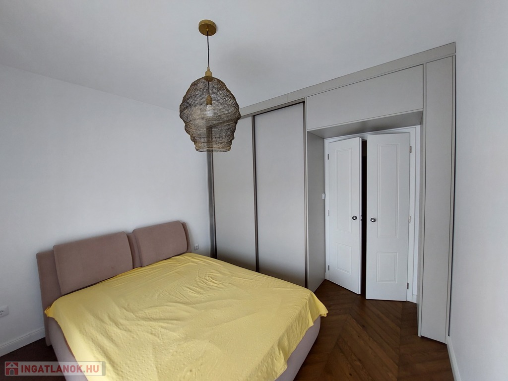 Gyönyörű, egy hálószobás, minőségi bútorokkal berendezett, amerikai-konyhás, nappalis lakás várja új, igényes bérlőjét. A 43 m-es lakáshoz egy 7 m2-es terasz is tartozik. A konyha teljesen gépesített: beépített hűtő, mikró, sütő, főzőlap, mosógép, a nappaliban tv. Beépített szekrény a hálószobában, nappaliban, fürdőben, előszobában. A liftes lépcsőházban lévő klímás lakáshoz a mélygarázsban kocsibeálló is tartozik (kötelező kibérelni + 20e). Az ingatlan max. 2 főnek kiadó hosszú távra. Kisállat nem hozható. Az újszerű lépcsőház könnyen megközelíthető, autóval, busszal, de a belváros is csak pár percre van.