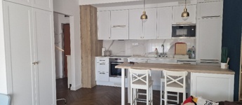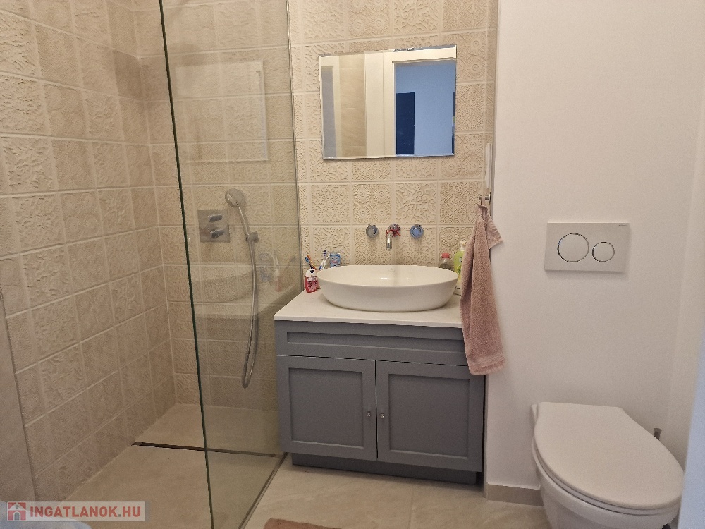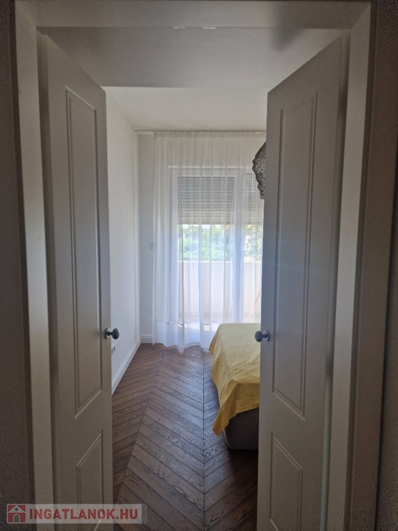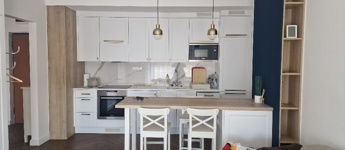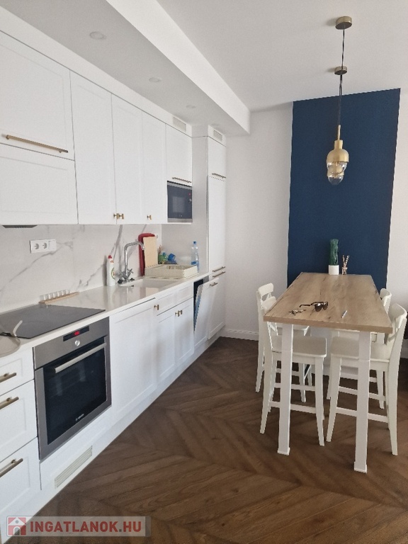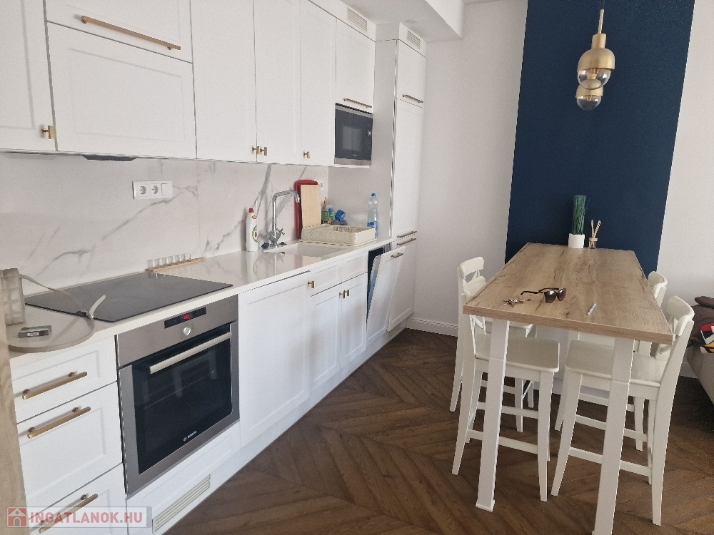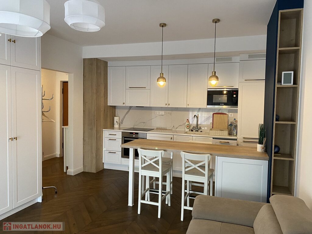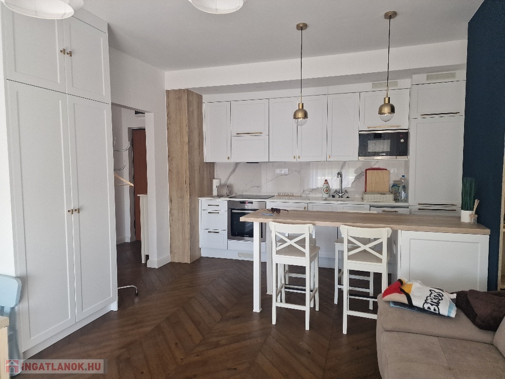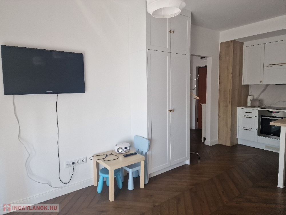 Gyönyörű, egy hálószobás, minőségi bútorokkal berendezett, amerikai-konyhás, nappalis lakás várja új, igényes bérlőjét. A 43 m-es lakáshoz egy 7 m2-es terasz is tartozik. A konyha teljesen gépesített: beépített hűtő, mikró, sütő, főzőlap, mosógép, a nappaliban tv. Beépített szekrény a hálószobában, nappaliban, fürdőben, előszobában. A liftes lépcsőházban lévő klímás lakáshoz a mélygarázsban kocsibeálló is tartozik (kötelező kibérelni + 20e). Az ingatlan max. 2 főnek kiadó hosszú távra. Kisállat nem hozható. Az újszerű lépcsőház könnyen megközelíthető, autóval, busszal, de a belváros is csak pár percre van.