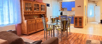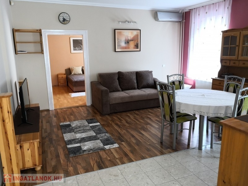 Pécs- Petőfi utca 63-ban, egyetemváros-belváros határán, három szintes téglaépítésű társasház 2. emeletén, 55nm-es, amerikai-konyha nappalis+1szobás , fiatalos lakás kiadó. Az ingatlan néhány éve gépészetileg és esztétikailag is teljes felújításra került. Konyhájában L alakban végigfutó, egyedi tervezésű konyhabútor található. Szobái magas kopásállóságú laminált parkettával, a többi helyiség, minőségi kerámia lapokkal burkolt. A fürdőben modern szaniterek és burkolatok kerültek beépítésre.. Az összes nyílászáró új, hőszigetelt üvegezésű, bukó-nyíló műanyag nyílászáróra cserélt.Kellemes időrért légkondicionáló felel.Az ablakok a csendes füvesített, parkosított belső udvarra néznek. Közvetlen környezetében buszmegállók, óvoda, iskola, gyógyszertár, rendelő intézet, posta, boltok, üzletek, éttermek, edzőterem és számos kiszolgáló egység megtalálható. Elhelyezkedése miatt , fiatal párnak és diákoknak egyaránt tökéletes választás. Egyetemek gyorsan, könnyedén elérhetők. A kaució 2 havi kaució és 1 havi bérleti díj megfizetését követően azonnal birtokba vehető.