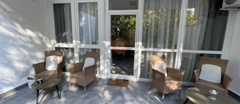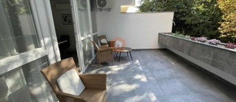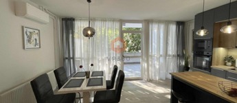 72 m2 földszinti elhelyezkedés + 20 m2-es déli fekvésű terasz, igényes kerti bútorokkal, nyugodt, csendes környezetben!