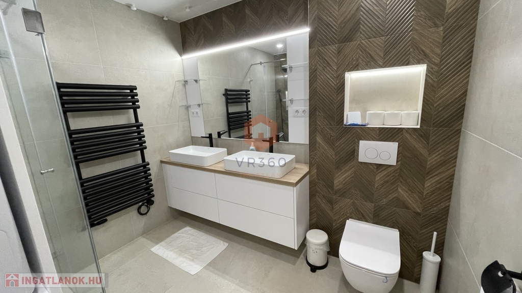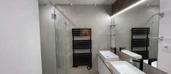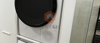 fürdőszoba zuhanyfülkével, mosó-szárítógéppel, Wc.