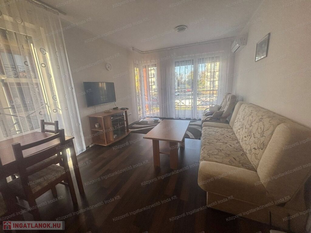 Az ingatlan jó elosztású, teljesen berendezett, bútorozott, gépesített. Helyet kapott benne amerikai konyhás nappali, 2 hálószoba, fürdőszoba, külön toalett, nagy terasz. A fürdőszobában kád és zuhanyzó is lehetőséget ad a lazulásra, felfrissülésre. A szobák laminált padlóval a többi helyiség járólappal burkolt. A nyári melegben klíma segíti a megfelelő hőmérséklet beállítását.