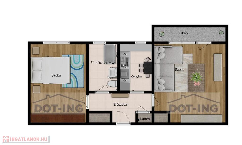 - 52 m2 (2 különnyíló szoba,konyha, kamra, nagy erkély)