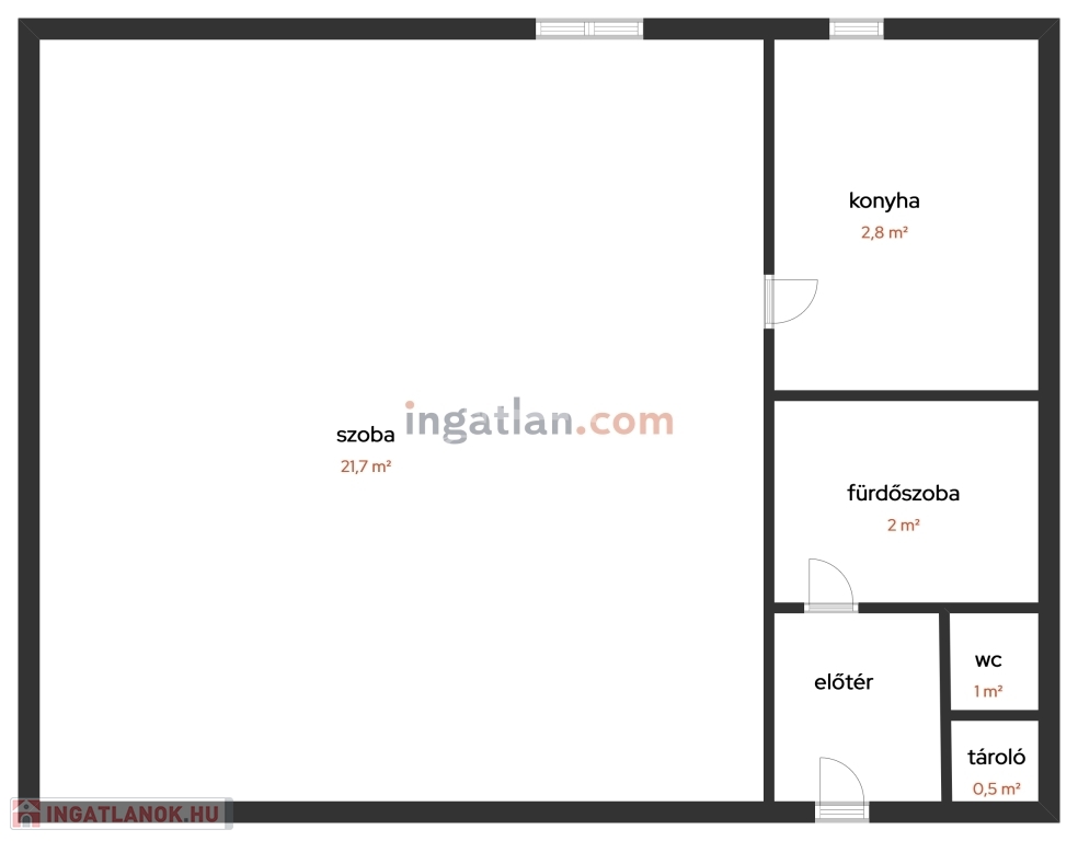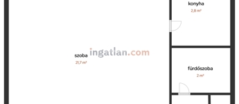 szoba 18,00m2, fürdőszoba 2,00m2, konyha-étkező-nappali 4,00m2, közlekedő-előtér 3,00m2, wc 1,00m2;