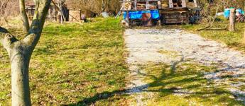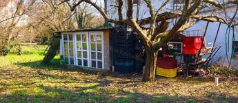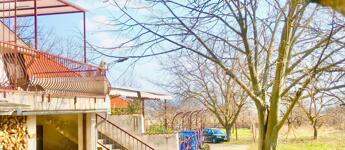 -tágas nappali, kényelmes 20 m2 terasszal és nagy kert résszel, ahol gyümölcsfák egy tároló és egy kis barkács műhely található