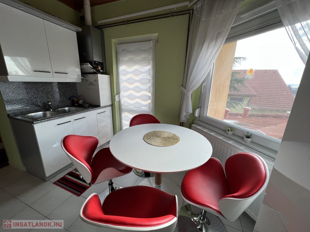 Ez a 59 m²-es, kétszobás lakás, amely egy hatlakásos társasház felső szintjén található, a Balatonfüred központjához közel helyezkedik el.