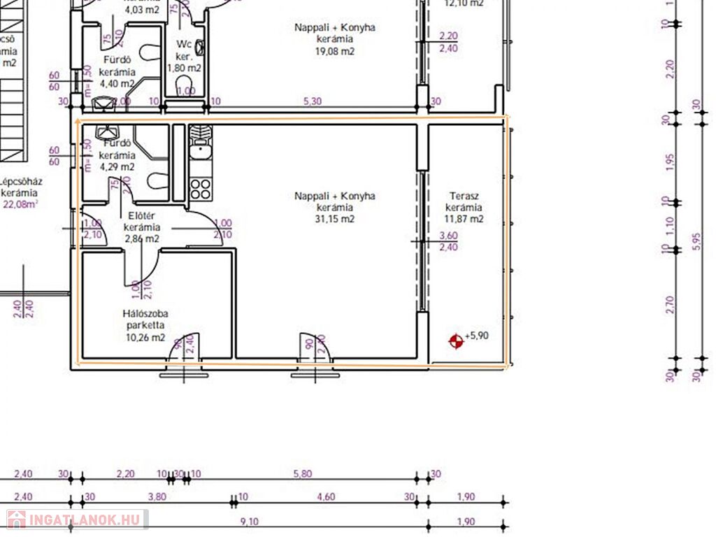 A lakáshoz kocsibeálló is tartozik.