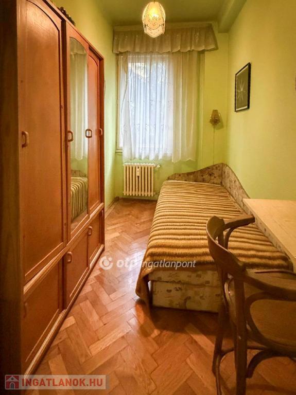 Biztonsági ajtón keresztül jutunk az ingatlanba, ahol egy mára már letünni készülő kor eleganciájával, korhű bútorzattal, igényes korabeli és folyamatosan megújult családi otthon tárul elénk. Tágas nappali egy külön nagy étkező térrel elválasztva, de mégis egyben. Nem recsegő tölgyfa parketta nagyon jó minőségben, koloniál bútorok, kétoldalas bár, nyitható 6 személyes étkezőgarnitúra nagypolgári stílusban. Egy hatalmas hálószoba, beépített erkéllyel, egy kisebb szoba, külön WC, fürdőszoba káddal és zuhanyfülkével, mosógéppel, modern konyha pár éves nagyon szép konyhabútorral, mosogatógéppel, gáztűzhellyel, elszívóval,valamint egy hideg spejz. A hálóból egy beépített zárt terasz nyílik az utcafrontra, reggeli kávézáshoz kitűnő. A konyhánál is a jó szellőzést egy francia 1 m2-es terasz biztosítja, ami a hátsó kertre néz.