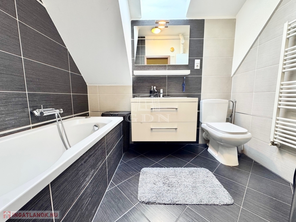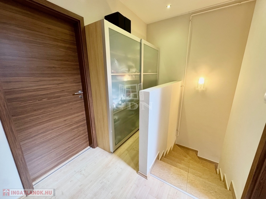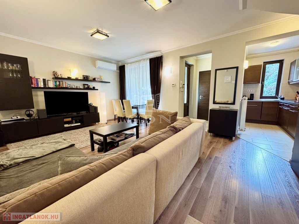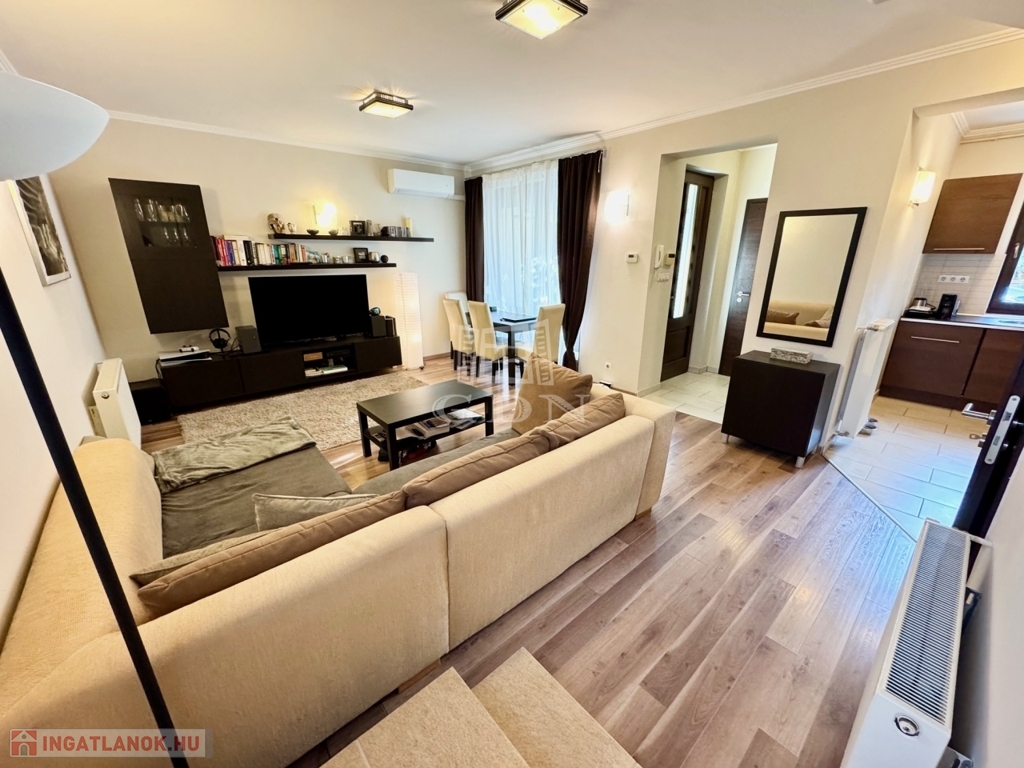 III. kerületben, Csillaghegyen, kertvárosi környezetben, kiváló közlekedés és ellátottság mellett, CSENDES aszfaltozott mellékutcában, 2011-ben épült, 4 lakásból álló sorházban, saját tulajdonú 102 nm-es intim kerttel, valamint dupla terasszal rendelkező (8+5 nm), 2 szintes, 70 nm-es lakóterületű, kiváló elosztású, nappali + 2 hálószobás, ablakos konyhás, kamrás, dupla wc-s, napos-világos D-NY-i fekvésű, alacsony fenntartású, kombinált gázcirkó fűtésű, egyedi mérésű, újszerű állapotú, klimatizált, riasztórendszerrel felszerelt, tehermentes, rugalmasan birtokba vehető, önálló helyrajzi számmal rendelkező sorházi lakás, beépített, gépesített konyhával, igényesen kialakított, fedett felszíni gépkocsibeállóval, gondozott kerttel, 6 nm-es kerti tárolóval, kulturált lakóközösségű társasházban eladó.