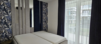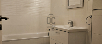 Mindkét hálószoba csendes, világos, barátságos. A lakásban két fürdőszoba van, a nagyobbik káddal és wc-vel, a kisebbik zuhanyzóval és wc-vel lett kialakítva, Háztartási helyiség, riasztó, videós kaputelefon az extra felszereltségek közt.