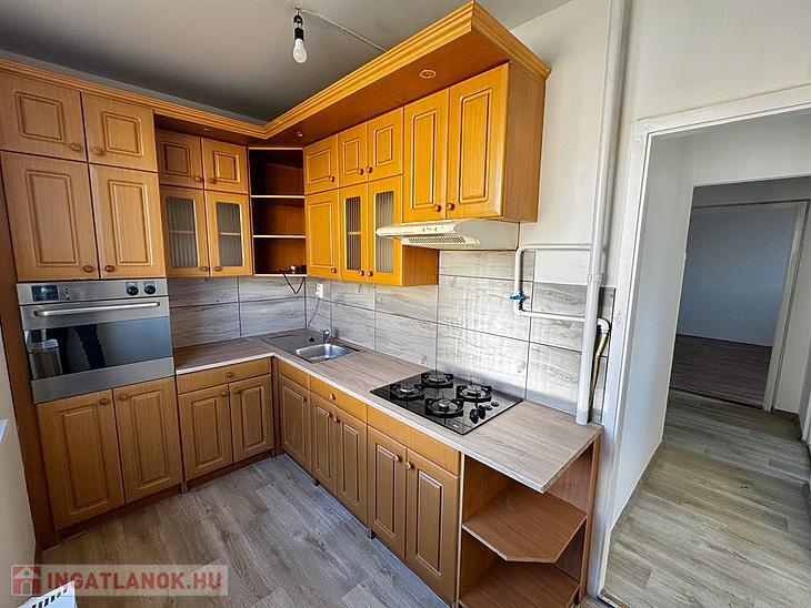 A konyha tágas, világos, nagy ablakkal rendelkezik, így a természetes fény szinte egész nap beárad. Bútora újabb, jó állapotú, a mindennapi használathoz kényelmes elrendezéssel; szagelszívóval és beépített elektromos sütővel felszerelt.