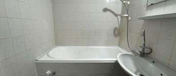 A fürdőszoba teljesen felfrissült: új akrilkád került beépítésre, és itt kapott helyet a mosógépkivezetése is.