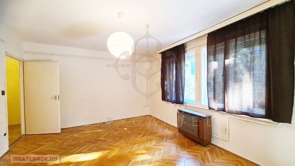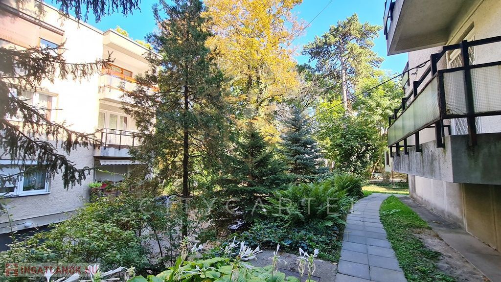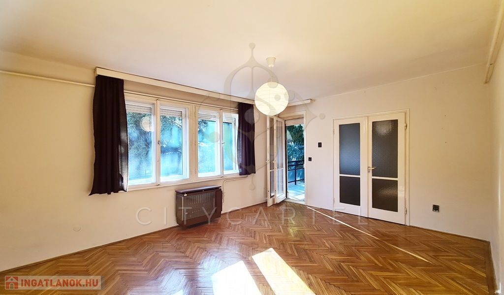 A Budagyöngye bevásárló központtól 10 percre a Tárogató úton, ősfás, parkosított és körbekerített telken, tégla építésű, 56 nm-es két erkélyes, körbejárható kettő szobás, gázkonvektoros földszinti lakás tárolóval eladó.