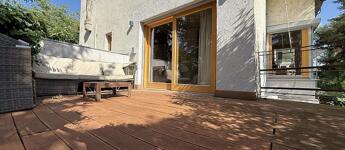 A 44 m²-es lakás praktikus, modern elrendezésű, amerikai konyhás nappalija egy 16 m²-es saját teraszhoz kapcsolódik, amely egy nagy, zöld kerttel nyújt közvetlen kapcsolatot – tökéletes helyszín reggelihez, pihenéshez vagy baráti beszélgetésekhez. A gondozott kert saját használatú, és igény esetén gépkocsibeálló is kialakítható benne, ami a környéken különösen értékes előny.