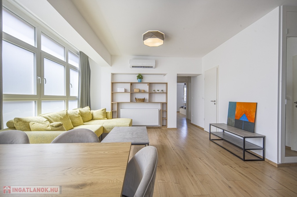 A közös költség fűtéssel, felújítási alappal, valamint lakószámra lebontva hideg- és melegvízzel együtt 52 600 Ft - ezen kívül tehát csak a villanyt kell külön fizetni rezsi tekintetében. A társasház fűtése házközponti, a radiátorok thermófejjel szereltek, így szabályozhatóak. A nappali és a nagyobb háló klimatizált.