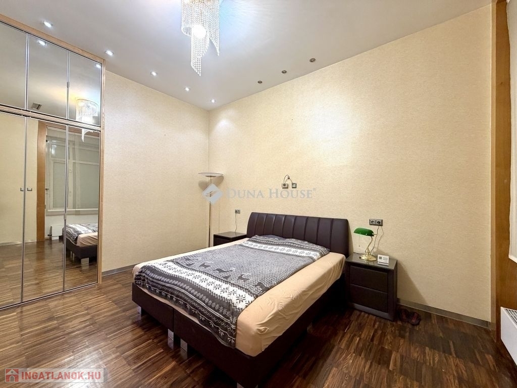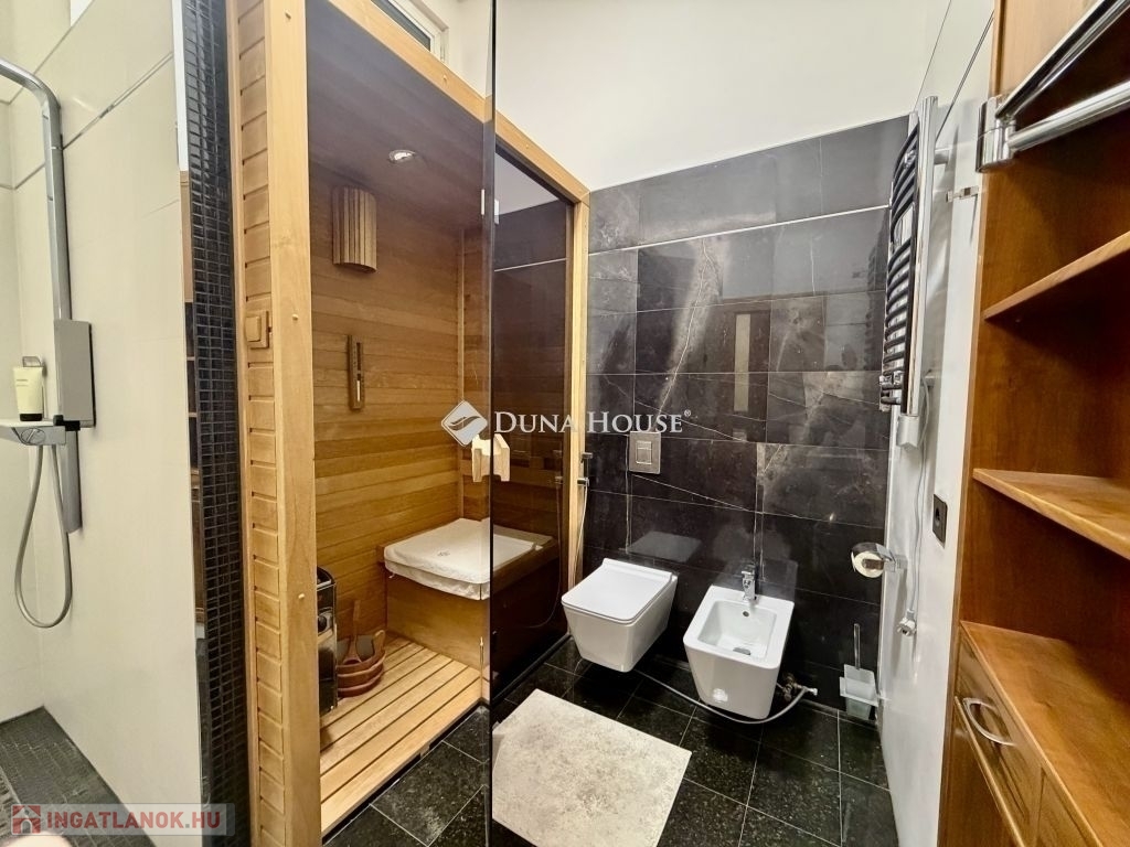 Tágas, igényesen felújított polgári lakás a Lövőház utca sétáló részénElhelyezkedés:Budán, a II. kerület egyik legkedveltebb részén, a Lövőház utca sétálóövezetében kínálunk megvételre egy 100 m²-es, igényesen felújított polgári lakást.A környék infrastruktúrája kiváló: a Mammut bevásárlóközpont, a Millenáris park, valamint számos étterem, kávézó és üzlet néhány perc sétára található. A lokáció Budán az egyik legélhetőbb városi környezetet kínálja.Főbb paraméterek:100 m² alapterülettéglaépítésű társasházfélemeleti elhelyezkedés3 métert meghaladó belmagasságutcai és udvari tájolásliftes épületlégkondicionáltA lakás kialakítása:A lakás központi tere egy nagyméretű, tágas nappali, amely világos és reprezentatív életteret biztosít.Az udvarra néző hálószoba külön gardróbbal rendelkezik, így csendes és jól használható privát tér.A lakásban található továbbá:külön konyha étkezővel, teljesen gépesítvea konyha mellett kialakított gépháznagyméretű tárolószoba, amelyhez mosókonyha is kapcsolódikA fürdőszoba tágas kialakítású, aholzuhanyzóWC és külön bidévalamint szauna is helyet kapott.Műszaki tartalom:elektromos fűtéslégkondicionáláskiépített vagyonvédelmi rendszertávirányítású alumínium redőnyökbiztonsági bejárati ajtóbeépített széftávolról vezérelhető riasztó- és kamerarendszerigényes belsőépítészeti megoldások