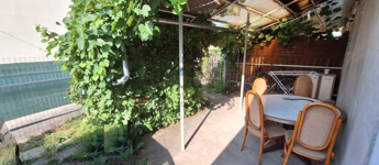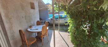 A lakás bejárata előtt van egy kis fedett terasz, a konyha előtt pedig egy nagy - szintén fedett - terasz. Körülötte néhány tőke szőlő teszi intimmé a teraszt és a házat.