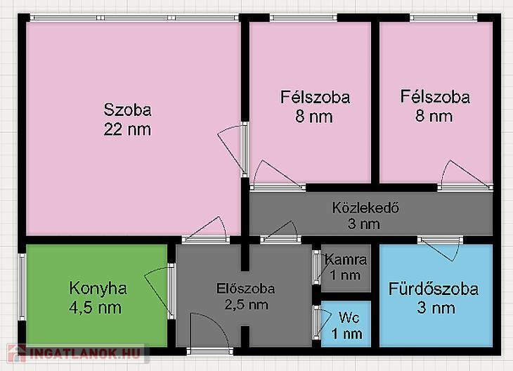 Az ingatlanba több ponton záródó biztonsági bejárati ajtót és redőnnyel felszerelt, műanyag keretes, thermo üveges nyílászárókat építettek be. A szobákban laminált padlót helyeztek le, a többi helyiséget járólappal burkolták.