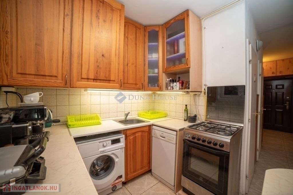A jó állapotú, 71 m2-es ingatlan beépített bútorzattal együtt eladó.