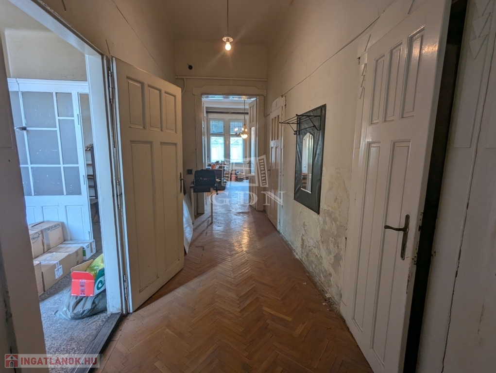Álmodja meg mesés otthonát vagy irodáját, rendelőjét ebben a különleges adottságú, klasszikus polgári lakásban a Népszínház utca szívében! A tágas, 104 m²-es lakás hatalmas ablakain keresztül zöld, virágos szigetekre, különleges épületekre nyílik kilátás, a dupla bejárat pedig lehetőséget ad két külön lakás vagy lakás + iroda kialakítására is.