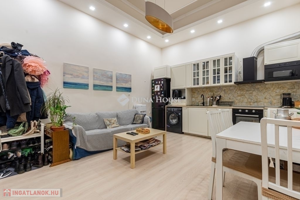Egyedi ajánlat!! 1 millió Ft/ nm ár!! Használja ki most a 3 %-os lakáshitelt!!Megvételre kínálom ezt a 77 nm alapterületű, 2 szobás - a Rákóczi úttól kb 50 méterre található, az Erzsébet körúthoz közeli - 2019-ben teljeskörűen felújított 2. emeleti lakást.Az ingatlanba belépve szemben találjuk a gépesített konyhát (mosógép, hűtő, elektromos sütő, főzőlap), a folyosóról jobbra található egy különnyíló, galériázott( masszív vasgerenda, faburkolat) szoba (közel 14 nm), amely a csendes udvarra néz. Tovább haladva balra található a fürdő, amely zuhanyzóval van ellátva, majd tovább haladva a világos, csendes, nagyméretű ( 33nm) nappaliba érünk.Az ingatlan per és tehermentes, 1/1 tulajdon, rövid időn belül költözhető.Az ingatlan fűtűs/hűtéséről 3 db inverteres klíma gondoskodik.Közös költség 16.000.- Ft.A házat folyamatosan karbantartják, a lépcsőházat nemrégiben festették ki.Tömegközlekedés szempontjából is kiváló, a 4-es és a 2-es metró kb 2 percre található, a 7-es,99-es busz valamint a 4-es és 6-os villamos szintén pár perc sétatávolságra van.Az utcán mindig található parkolóhely.Megtekintéssel vagy egyéb kérdéssel kapcsolatban állok rendelkezésére a hét bármely napján.A hirdetésben szereplő FIX 3%-os lakáshitel részét képező támogatásokat Magyarország Kormánya nyújtja.