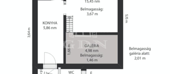 • Elrendezés: előszoba-konyha, külön WC, zuhanyzós fürdőszoba, világos szoba galériával