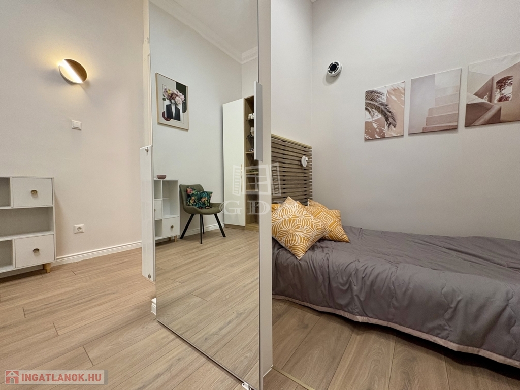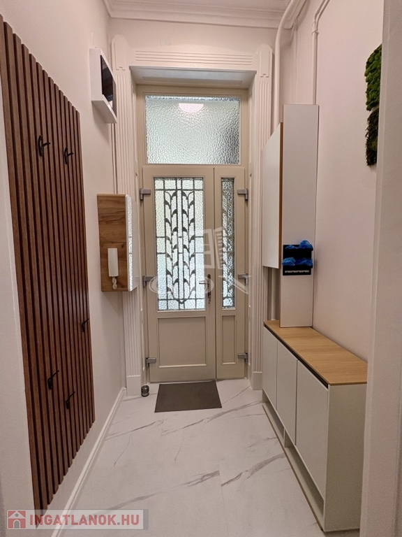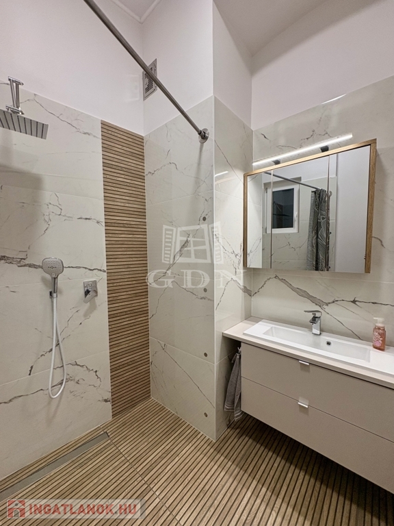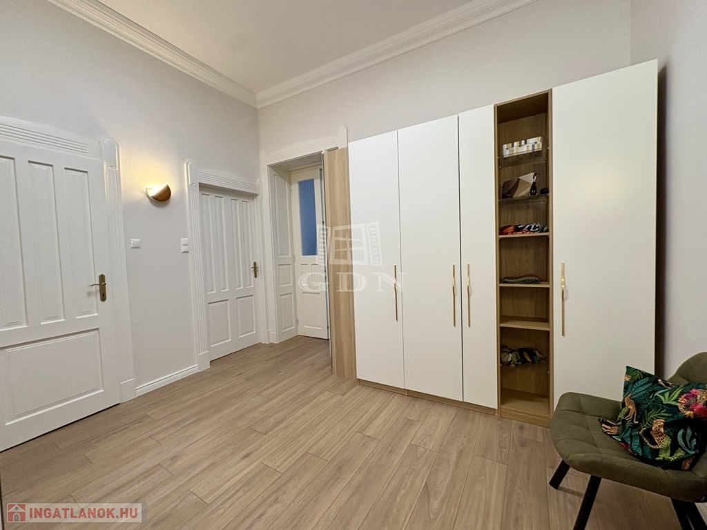 Az ingatlan praktikus kialakítású: tágas előtér, külön gardróbszoba, hálófülke, hatalmas zuhanyzós fürdőszoba, valamint külön helyiségben található bidés WC. Az ingatlan minden részlete átgondolt, kényelmes és modern életvitelt biztosít.