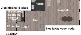 Első körben egy irodára és egy kisebb lakásra lett bontva mely akár még jobban tagolható.