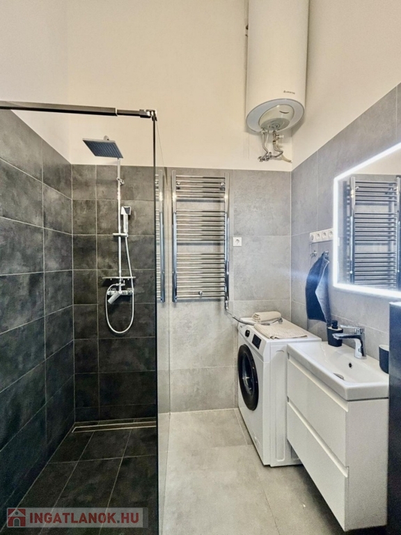 Az ingatlan egy jó állapotú, liftes ház legfelső emeletén helyezkedik el, 46 m2-es, amerikai konyhás nappaliból és egy tágas hálószobából áll. A lakás klímával felszerelt. Az ingatlan néhány évvel ezelőtt lett teljesen felújítva. A vételár a bútorokat és a berendezéseket is tartalmazza.