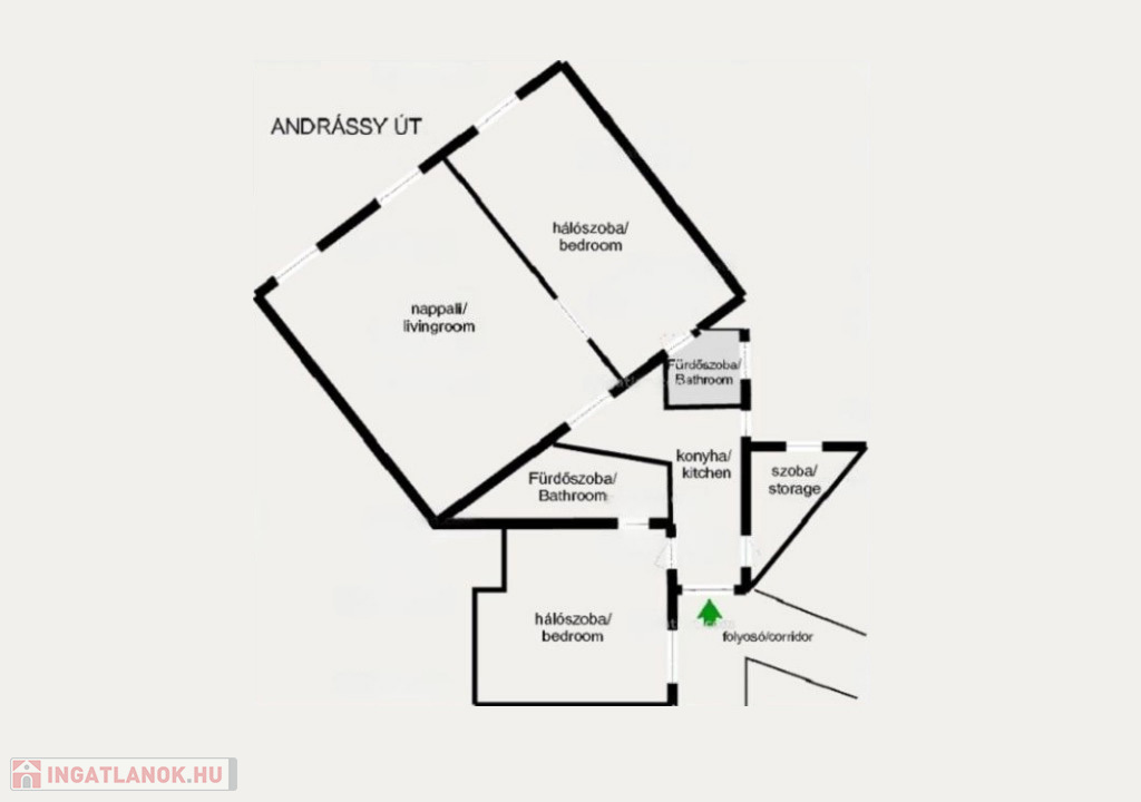 Az ingatlan az Andrássy útra néz, szép liftes házban.