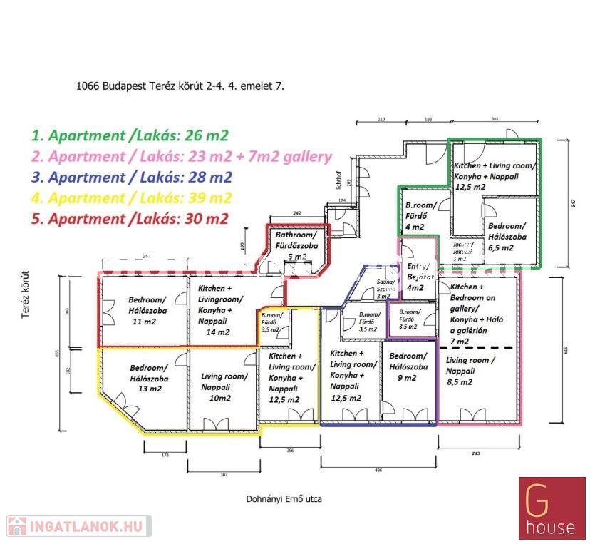 Cher chercheur ! J'ai le plaisir de vous présenter IV, situé sur Teréz körút. appartements entièrement rénovés au premier étage avec une belle vue panoramique. Les propriétés devraient être prêtes au dernier trimestre 2024 et constituent un choix parfait tant pour les demandeurs de logement que pour les investisseurs. Les appartements font l'objet d'une rénovation complète, comprenant le remplacement de toutes les lignes électriques et de plomberie, ainsi que du système d'égouts. Les nouvelles portes et fenêtres ont déjà été installées et les volets électriques et motorisés le seront bientôt, qui offrent une excellente isolation thermique et phonique. Les nouveaux propriétaires ont la possibilité de choisir des revêtements chauds et froids, afin que la propriété puisse être entièrement adaptée à vos goûts et à vos besoins. Les travaux de rénovation comprennent également le lissage et la peinture complets, ainsi que l'installation des équipements sanitaires et électriques. La situation juridique est réglée, le Társasház a voté pour établir des numéros topographiques indépendants, de sorte que chaque appartement aura une fiche de propriété distincte. De plus, Airbnb est autorisé dans la maison, ces appartements offrent donc une excellente opportunité de location à court terme. Les nouveaux propriétaires peuvent choisir parmi cinq appartements différents, dont quatre avec vue sur rue et un avec vue sur cour. L'équipement de base de chaque appartement comprend la climatisation, une cuisine séparée, une salle de bain séparée et une chambre séparée. Le plus petit appartement de 23 m² est également disponible, afin que chacun puisse trouver un logement à la taille idéale pour lui. Si vous êtes intéressé par cette excellente opportunité d'investissement ou par un bel appartement rénové au cœur du centre-ville, veuillez nous contacter pour plus d'informations ou pour planifier une visite personnelle. Les images sont des illustrations
