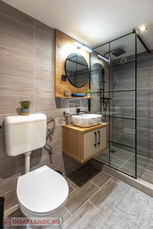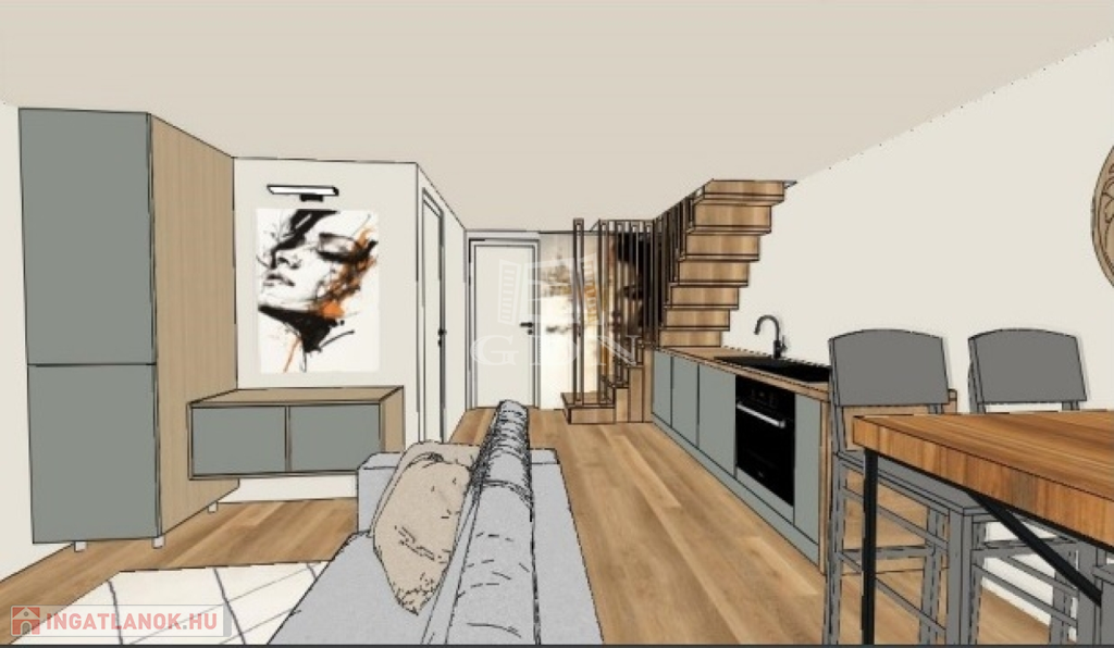Eladó egy luxus kivitelezésű, belső kétszintes ingatlan (fsz. belmagassága: 210cm, emeleten: 192cm), mely modern megoldásokkal felszerelt, mint az elektromos padlófűtés és hűtő-fűtő klímák.