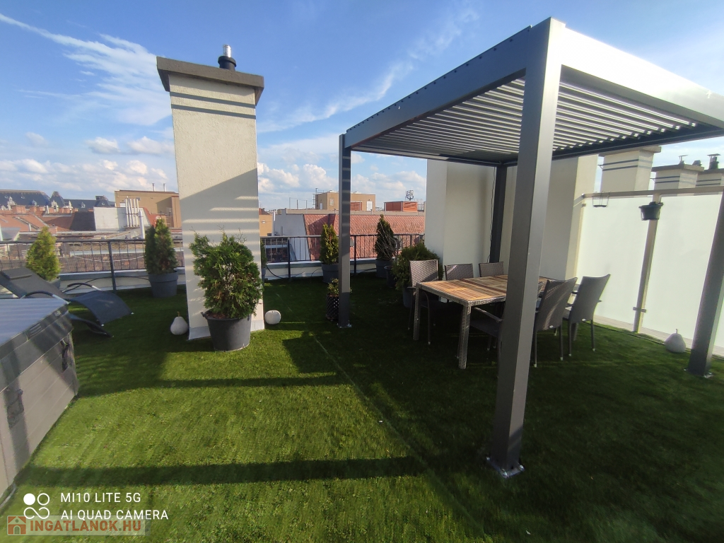 Tetőterasz: 75 m² privát jakuzzis, pergolás terasz – páratlan panorámával