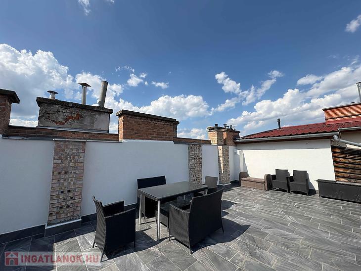 A lakáshoz tartozik egy kizárólagos használatú, 40 négyzetméteres tetőterasz, amely kiváló lehetőséget nyújt pihenésre, baráti összejövetelekre, vagy akár otthoni munkavégzésre is. Ez a különleges adottság ritkaságnak számít a belvárosi lakások körében, és jelentősen növeli az ingatlan értékét és kényelmét.
