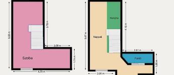 Az ingatlan 19 m² alapterületű, amelyet egy 17 m²-es, teljes belmagasságú állógaléria egészít ki – így a hasznos tér kényelmesen megnövekszik. A lakás okosan kialakított: a galérián tágas hálórész, a földszinten pedig nappali, konyha és zuhanyzós fürdőszoba található.