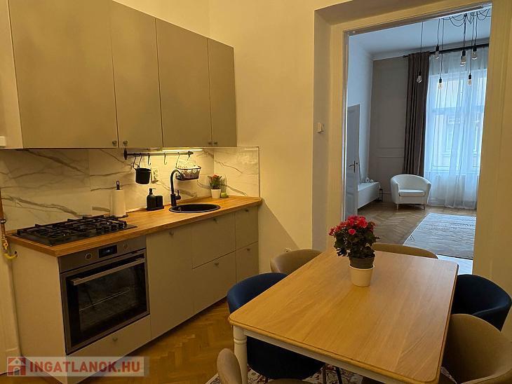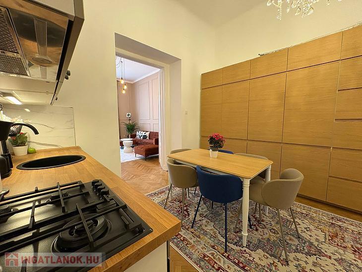 Budapest belvárosának egyik legkedveltebb utcájában, a VI. kerületi Lovag utcában, kínálunk megvételre egy 91 nm-es, 3 szobás, teljes körűen felújított lakást. Az ingatlan egy jó állapotú, klasszikus polgári társasház 2. emeletén található, világos, tágas terekkel és ízléses kialakítással. A lakásban modern konyha, igényesen felújított fürdőszoba, valamint három különnyíló szoba került kialakításra, ami ideálissá teszi családoknak, pároknak vagy akár irodai célra is. Az ingatlan minden részlete a minőséget és a kényelmet tükrözi – a felújítás során minőségi anyagokat használtak fel, így az új tulajdonosnak már csak költöznie kell. A környék infrastrukturálisan kiváló: közel a Nyugati térhez, az Oktogonhoz, az Andrássy úthoz, tömegközlekedés, üzletek, éttermek, kávézók mind néhány perc sétára találhatók.Az adatok tájékoztató jellegűek.