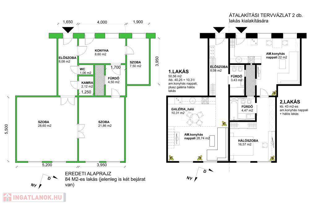 Két külön bejárattal rendelkezik, így két lakássá is alakítható