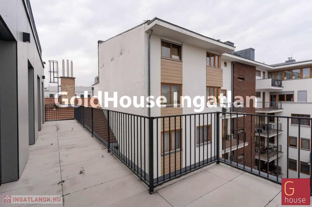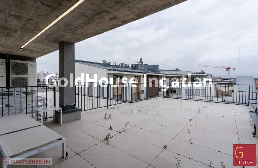 A kínált ingatlan a projekt egyik kiemelt egysége: nettó 86,44m² alapterületű, 4. emeleti penthouse lakás, amely egy amerikai konyhás nappalit, kettő külön nyíló hálószobát, egy fürdőszobát, egy 20,80m²-es teraszt és egy 76,54m²-es tetőteraszt foglal magában.