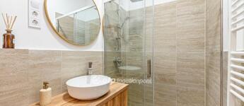 - egyedi tervezésű, épített zuhanyzó a fürdőben,