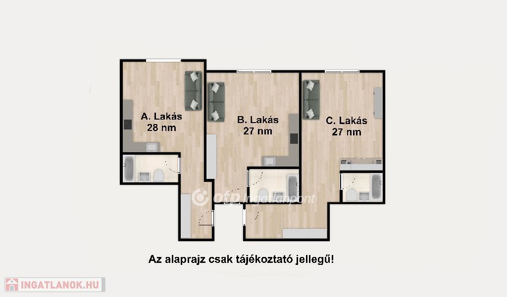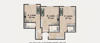 Az eredetileg 86 nm-es ingatlant három osztottak, így alakítottak ki egy 29, egy 28 és egy 27 nm-es műszakilag teljesen különálló lakást.